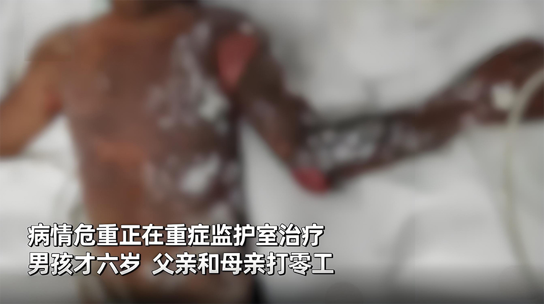 随后,这名严重烧伤的男孩被紧急送往医院。遗憾的是,当男孩被送抵医院时,已经陷入了休克状态,目前正在重症监护室接受治疗。