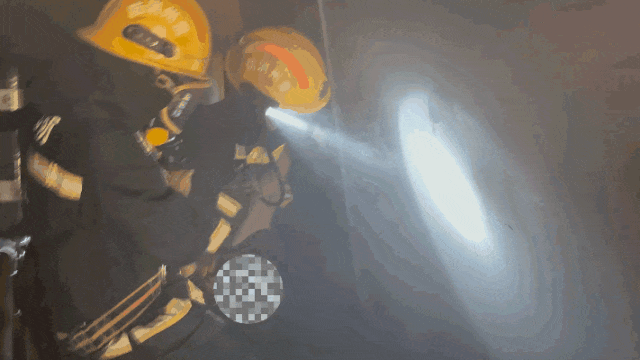 紧张而细致的搜寻过程中,消防员们最终在客厅的一角发现了已昏迷倒地的被困人员。面对这一紧急情况,消防员们没有丝毫犹豫,迅速而小心地将被困人员从火场中抬出,并立即转移到安全区域。